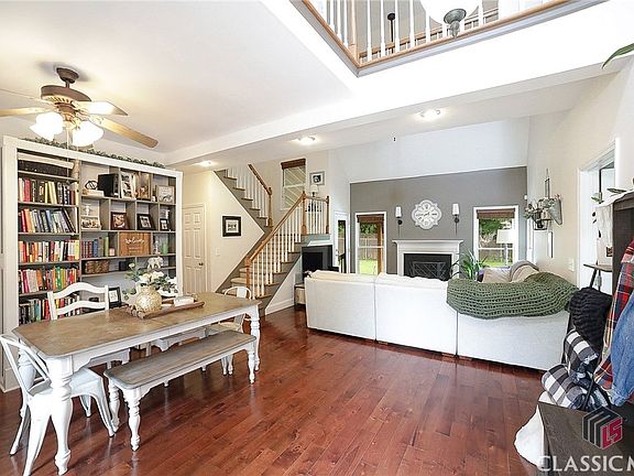 Situated on a quiet cul-de-sac, this classic traditional home seamlessly blends timeless charm with thoughtful modern upgrades. Immaculately maintained and move-in ready, it offers pristine interiors and a warm, inviting atmosphere—perfect for those seeking both elegance and comfort in a truly fantastic setting. DETAILS:*3 Bedrooms/2 Full Baths/1 Half Bath *1596 Sq.Ft. *Year Built - 1998 *.65 Acres Cul-de-sac Lot. SPECIAL FEATURES: -Hardwood Floors, -Masonry Fireplace, -9ft.+ Ceilings, -Double Paned Windows accompanied by 2in. Blinds Package, -Custom Decorative Light Fixtures, -Neutral Paint Palette, -Custom Built-in Shelving and Niche Sitting Areas. FLOOR PLAN: -Inviting Open Design -Bright Foyer open to the living and dining areas. -Featuring custom built-ins perfect for display, the sunlit Dining Room could also serve as an extension to the living room or a study if you prefer. -Two-story vaulted ceilings, French door to the rear patio, and windows flanking the central fireplace accentuate the dynamic Great Room. -Half Bath and Utility Closet can be found in the hall on the way to the kitchen. -Custom appointed and well-equipped, the bright Kitchen features sparkling granite countertops, newly-painted custom cabinets, gleaming tile backsplash, double-basin-under-mount sink, upgraded light fixture, pantry with shelving system, and complete stainless steel appliance package. APPLIANCES: *Smooth-top Stove/Oven combination *Dishwasher *Vent-hood Microwave *Refrigerator. -The kitchen extends to the sunroom-styled breakfast room boasting a triple window providing ample natural light, and upgraded with a built-in bench sitting nook adding a touch of charm. -Tucked away on the main floor, just off the foyer, is the spacious, private Owner’s Suite featuring carpet flooring, ceiling fan light fixture, and triple picture window. -The Primary Full Bath offers all the amenities including a garden tub, dual-sink vanity with newly painted cabinets and upgraded vanity lighting, separate shower, and spacious closet complete with shelving system. SECOND LEVEL: —Lofty Balcony views of both the great room and foyer. —Floored Attic Storage (or space to expand) —2 Bedrooms and 1 Full Bath. —Each bedroom is outfitted with plush carpet, ceiling fan light fixtures, double windows, and ample closet space. One of the bedrooms has been upgraded with the perfect office/desk nook. EXTERIOR: ~Oversized Covered Rear Patio that extends to an open-air section-perfect for grilling. ~Fenced Rear Yard ~Separately fenced pet or garden space. ~Storage Building ~Concrete Drive and walkways ~2-Car Side-Entry Garage with NEW Garage Door. EXTRAS: -Electric Heat and Air -Public Water and sewer -Brick and HardiPlank exterior. LOCATION: —Located within 8 miles Athens. —7 miles to Downtown Winder. —13 minutes to Barrow Crossing Shopping and Hwy. 316.
