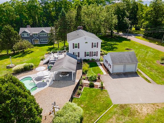 You will be thankful this Thanksgiving when you entertain your guests in this spacious, care-free home! The seller has lovingly refurbished this home with new windows, revised floor plan, engineered wood floors, newer roof, kitchen attic insulation, chimney, and more. Brand new septic in 2024. A gentle sloping back yard will afford a gentle sledding experience on a winter's day before you hop up to the granite island to enjoy hot cocoa. In summer, entertain under the covered pavilion on the spacious patio while guests enjoy the in-ground pool and yard. Paddleboard or kayak at Coventry Lake just down the street! There you will find a town beach and boat launch! Flower beds will satisfy your green thumb, and there is plenty of space for raised beds. Potential for in-law suite in walk-out basement. Also, a workshop awaits a master craft person! College bound? UConn and Eastern Connecticut State University are minutes away! Easy commute to Hartford and Manchester malls!