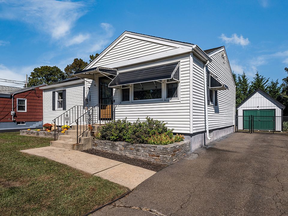Welcome to this charming ranch in a quiet cul-de-sac just minutes from the beach! This delightful home is perfect for first-time buyers or those looking to downsize. It features 2 bedrooms but can easily be transformed into a 3-bedroom layout if a dining room isn't required. The bathroom has been beautifully remodeled with modern finishes. The lower level provides ample living space along with a laundry area. This energy-efficient home boasts recently installed solar panels, an on-demand water heater, and newly installed central air conditioning. Enjoy relaxing in the new hot tub in the private backyard, and take advantage of the extra storage provided by two sheds. Make this charming ranch your new home! House is not in the flight path. No flood insurance needed.