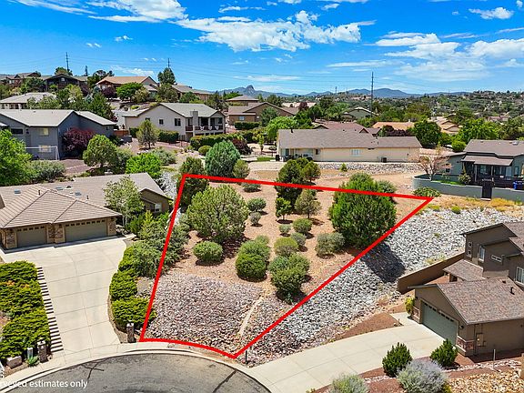 This is an amazing property close to all of Prescott's amenities located at the end of the cul de sac. You have the ambiance of the prestigious Prescott Lakes location without it's HOAS as well. The property is close to grocery shopping, medical, hiking biking trails, several options for schools, and an easy drive to the down town square. It is located within the city limits and buyer should verify water, sewer and utilities at the property. There are also distant views of various local landmarks such as the Dells and the San Francisco peaks. There is some landscaping completed at the front of lot for current drainage. Not finding your perfect home? Come build it today on this prime lot and location!