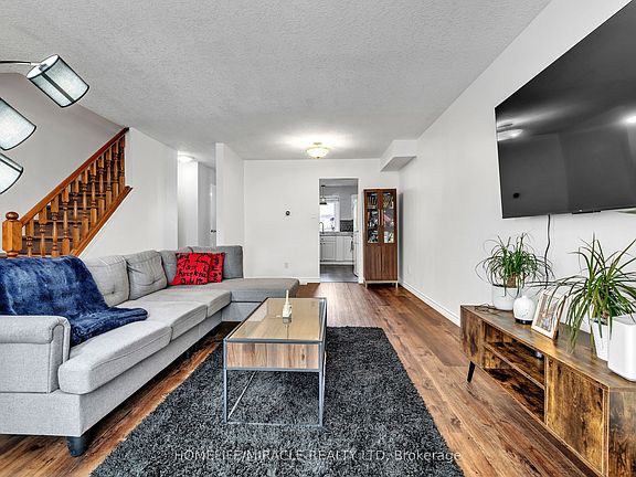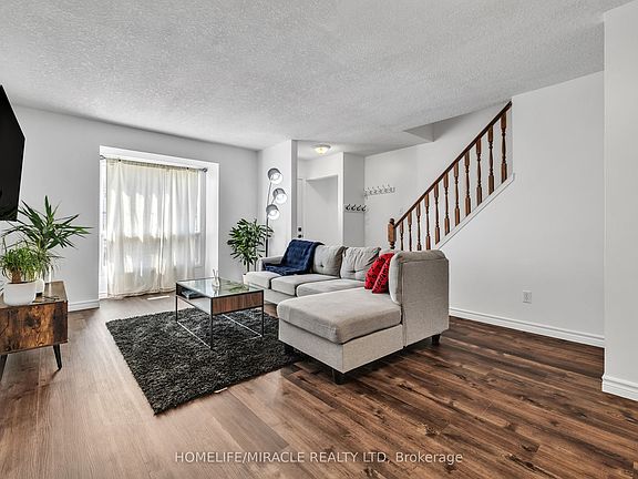 Welcome to this beautifully updated and spacious townhouse, offering 3 generously sized bedrooms and 2 modern bathrooms. Featuring brand new laminate flooring and a newly upgraded staircase, And freshly painted to create spa-like atmosphere throughout. The main level boasts a large, contemporary living room with a bright large window, and a spacious kitchen - perfect for cooking and entertaining. Step outside to a private backyard ideal for summer BBQs and gatherings with friends and family. Upstairs, you'll find three bright bedrooms with large closets and windows, complemented by a sleek, updated family bathroom. The finished basement offers a versatile space that can be used as a recreation room, playroom, home office, or gym tailored to suit your lifestyle. You'll also find a large storage area adjacent to the laundry room. Enjoy the convenience of private parking right outside your front door, along with easy access to all amenities, schools, parks, Toyota Motors and public transportation. Move-in ready and perfectly located, this home is a must-see!