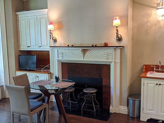 Decorative fireplaceUpdated bathroomIn unit laundryFront facing windowsHigh ceilingsEfficient kitchen