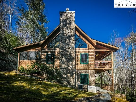Located in the heart of Valle Crucis yet tucked away privately on 2.19 acres, this log cabin is mountain perfection! Great room features wood floors, skylights, beautiful stone FP and has adjoining dining and kitchen. Main bedroom and hall bath are also on this level. Upstairs, in the loft, there is another full bath and room for 2 queen beds and 2 twins. Lower level has one car garage, laundry, and storage PLUS an additional bedroom and bath that sellers completed for themselves but always kept locked for rentals. (It is not counted in heated SF due to access through unfinished area but is 382 feet of finished heated space). Offered completely furnished and equipped as seen. Sweet screened porch has hot tub and dining area plus room for grill. Well is shared with the 2 other cabins on Miller Mountain Tr as is the driveway. No road maintenance agreement or POA but all owners contribute their share to road maintenance and well costs as needed. TV and internet is Skyline. Freeman Gas, 1000 gal tank leased. No deed restrictions. Cabin is in rental program with Blue Ridge Rentals, no drive by, please. Appointment can be scheduled around rentals. Whole house generator.