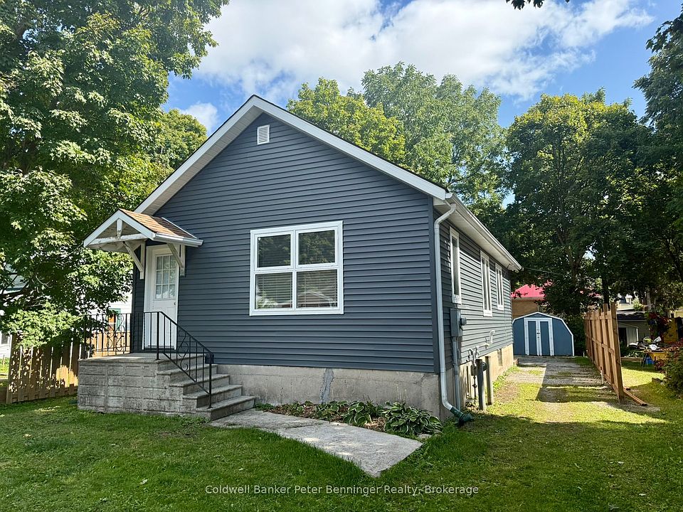 Cute spot that is affordable and move in condition. This bungalow offers 775 sq. ft. of living space on the main level. There is an eat in kitchen, dining area and bright living room. The 4 piece main floor bath shows well. Two bedrooms complete this level. Lower level is mostly unspoiled with the exception of an area that is blocked off and was used as a bedroom. Laundry is just at the bottom of the stairs. Forced air gas furnace is newer, most windows are replaced. Good roof shingles, 100 amp breaker panel. Partially fenced yard. Rear deck is 12' X 17' so lots of room for patio furniture. The 10' X 10' shed is perfect for the gardening tools. The exterior of the home had the old siding removed and newer vinyl siding applied at the end of August 2025. Call for your personal viewing. This home is situated on a nice residential area of Wingham on a 33' X 134' lot.
