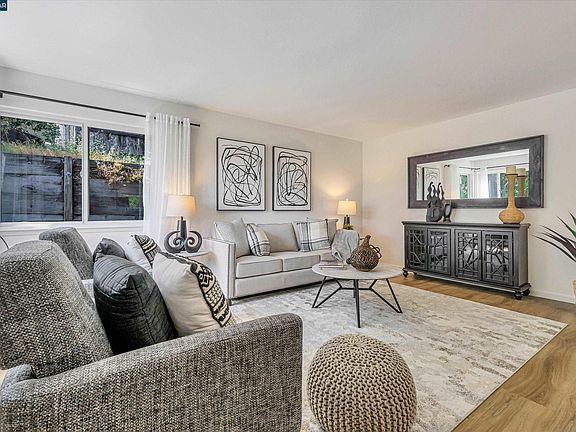 This single-story rancher sits on an expansive 8,712 s.f. lot offering untethered openness and stunning sunset views. The interior of the house features new Anderson windows, hallway skylight, trendy vinyl plank flooring and neutral paint colors throughout. This charming 3 bedroom home boasts a great room concept floor plan, creating a light and airy living space. The kitchen is a chef's dream, equipped with stainless steel appliances, painted cabinetry, a refrigerator, Bosch dishwasher, 220v stove, and LED recessed lighting. The primary suite offers tranquil tree views and his and her closets, while the primary bath features a tiled shower, solid surface vanity, and designer tile backsplash. Two additional bedrooms are generously sized and located on the opposite side of the home. The updated hall bathroom showcases a tiled shower over tub and an updated solid surface vanity with eye-catching designer tile backsplash. Outside, the back yard provides private outdoor space, perfect for entertaining or simply relaxing. The property also features a 2-car oversized garage, washer, dryer, updated electrical sub-panel, newer exterior paint, and a brand new Anderson storm door. Near Morello Park, Village Oaks shopping Ctr, restaurants and renowned Morello Park Elementary!
