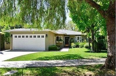 Beautiful 60's traditional with great curb appeal situated in a desirable North Monrovia neighborhood. Living room has corner fireplace with granite hearth and wood mantle, crown molding, recessed lighting and hardwood floors. The open floor plan features a large kitchen with eating area, window seat and bay window, cherry wood cabinets, dark green granite counter tops, gas cook-top, built-in oven, laundry area, double sink, ceramic flooring, and opens to a formal dining area. A 258 sq.ft. family room was added in 1990. The master bedroom has crown molding, large closet, a door to back yard and an attached 3/4 bath. The full guest bath has custom cherry cabinetry, black granite counter tops, Kohler sink and toilet, brass fixtures and sconces. The lushly landscaped grounds include a very private back yard with dark-bottomed pool with brick coping and separate spa and a horse topiary in front. Other amenities include a 2-car garage, central air and heat and much more. Move right in!