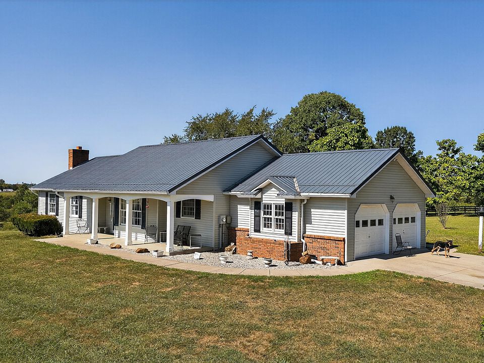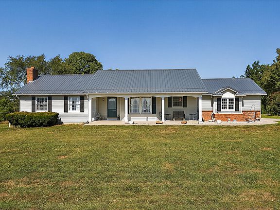 WOW you cannot put a price tag on this view overlooking the city and your own beautiful land with a stocked pond*Home is secluded and private*Ranch home , 3BR's possible 4 with full finished basement situated on 27.5 acres of land and a stocked pond*30x54 metal pole barn, storage building, tobacco barn with lean-to, chicken coop and a 2nd lean to for equipment storage*Bring your cattle and horses to this lovely farm*Creek borders part of the property*Outside brick firepit*First floor has 1568 sq ft of living space and the full finished basement offers another 1456 sq foot of living space*Kitchen and living room are open to one another*Basement has a walkout*The covered front porch and concrete patio are spacious and a very lovely place to ''just hang out'' Barns have 3 frost free water spigots*7 year newer metal roof, furnace and water heater approx. 3 years new*Attached 2 car garage*Land is completely fenced with split rail and woven wire*Garage has 440 sq ft*Covered from porch 246 sq ft*Covered concrete patio 180 sq ft*This farm offers everything you would want, the views and privacy are spectacular*Do not drive up driveway without a scheduled showing please*