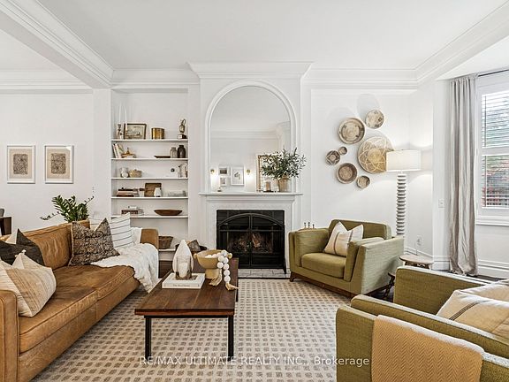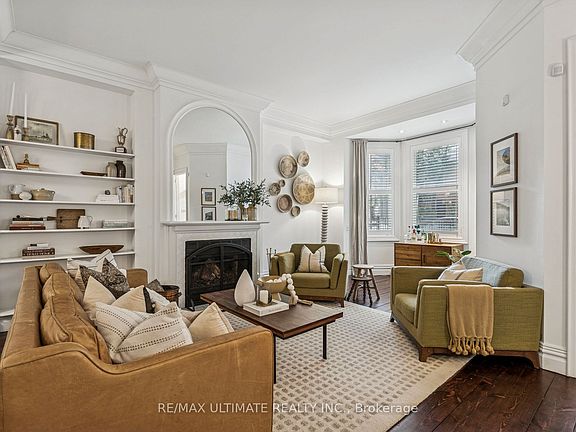 Welcome to this beautifully preserved gem that seamlessly blends classic character with modern comfort, perfectly situated in South Cabbagetown! This elegant 2.5-storey home features 4 spacious bedrooms and 2.5 baths, offering the ideal combination of heritage detail and contemporary living. Step inside the original stained-glass foyer door, where crown moulding, nearly 10 foot ceilings, a cozy reading nook, and a wood-burning fireplace (certified 2016) showcase timeless craftsmanship. The main floor layout is thoughtfully designed for entertaining, creating a warm and inviting atmosphere for gatherings. The primary bedroom retreat features vaulted ceilings, 2 separate closets, and a spa-inspired ensuite complete with a custom 36" walnut vanity topped with marble (2019). The fourth bedroom, currently used as a den, opens onto a fully permitted rooftop terrace (2017)-a perfect spot to unwind. With numerous updates including a newer roof, furnace, and AC, this home offers peace of mind and modern efficiency. Nestled among some of Toronto's most stunning heritage homes, this remarkable property is walkable to downtown and provides easy access to the Financial District, TTC, DVP, Distillery District, and Riverdale Farm (with weekly farmers' market May-October)!