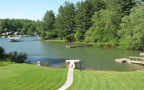 Seller Says "Bring All Offers!!" One-level lake front home with three bedrooms and 2 full baths. Platform dock on Lake Chatuge at end of quiet cove. Home is in excellent condition with open Great Room and large deck overlooking lake and mountain views. Full, unfinished basement with overhead door for boat or car storage. Nearly flat lot with large lawn and nice landscaping. Ready for your lake recreation. Turn key.