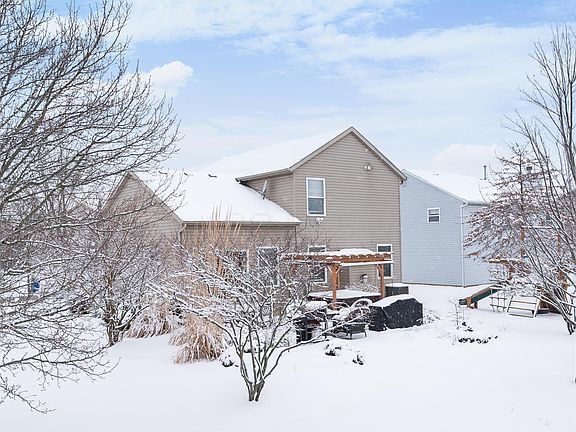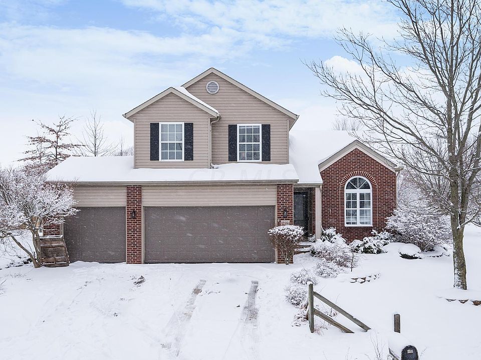 DARE TO COMPARE! This 3 BR/2.5 BA two story features a RARE THREE CAR garage and is situated on a beautiful landscaped corner lot with a paver patio, pergola and hot tub! The open floor plan features a vaulted living room/kitchen which is open to the family room offering a cozy gas FP! The fully equipped kitchen features SS appliances, tile back splash and a spacious dinette area! The finished LL has an impressive media room complete w/screen, projector, built in speakers and mini refrigerator (NOTE: theater chairs and popcorn maker NOT included). The LL also features an optional 4th BR w/sliding barn doors. Updated wood laminate flooring on 1st floor and newer light fixtures throughout! Heat pump replaced in 2011! Great location close to I-71, Alum Creek State Park and shopping
