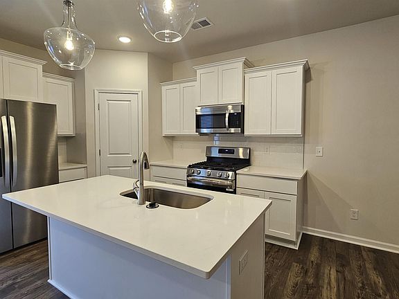 New Ashford Floorplan - All bedroom on second level for privacy. Enjoy white shaker cabinets, white quartz countertops, undermount sink, pull out faucet, disposal, dishwasher, built in microwave & stainless-steel side by side fridge in kitchen. Recessed can lighting in kitchen area. Nine ft ceilings 1st floor. Ceiling fans in great room and master bedroom. Mohawk woodgrain Mahagony color hard surface flooring on first floor. Tile flooring in the bathroom & laundry room. Carpet in all bedroom areas. Quartz countertops in all full baths too. Home enjoys gas cooking & heating along with tankless water heater. Garage has fully painted walls along with opener and two remotes. Coach light above garage door. Home has 2" faux blinds on all windows Disclaimer: CMLS has not reviewed and, therefore, does not endorse vendors who may appear in listings.