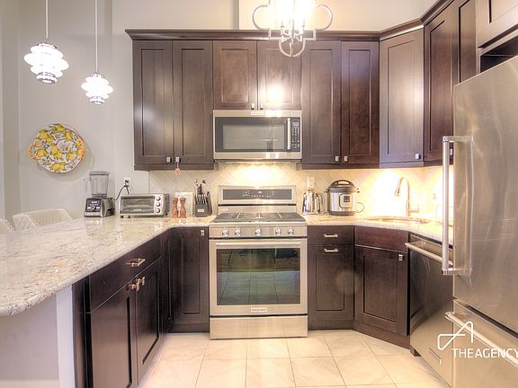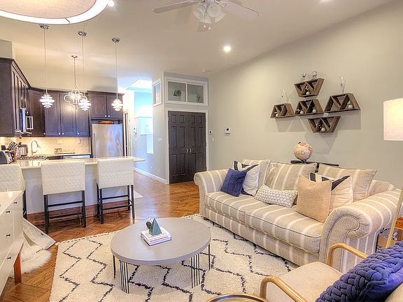 The chef's kitchen features stone countertops, high-end cabinetry, island seating, and stainless-steel appliancesincluding a full-size dishwashermaking both everyday meals and entertaining effortless. An in-unit washer/dryer adds to the convenience of townhouse-style living.