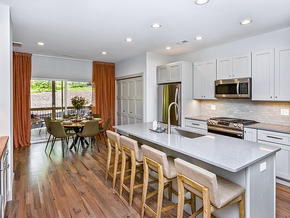 Just off the dining room on the main level, you'll find a private backyard oasis perfect for gatherings, where you can relax surrounded by nature and spot blue jays, cardinals, bunnies, groundhogs, deer, and other wildlife.