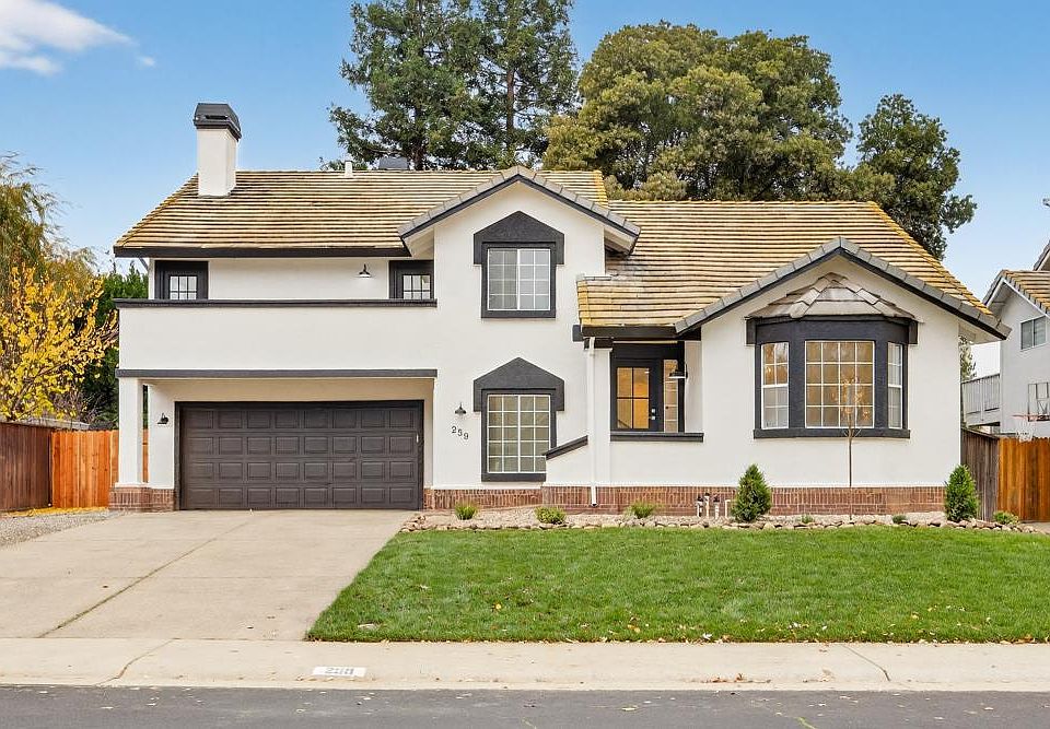 This beautifully updated modern farmhouse sits in one of the most desirable neighborhoods of Folsom. You'll fall in love with the elegant touches throughout. Separate living room with soaring ceilings, family room with cozy wood burning fireplace and formal dining room. Full bedroom & bathroom downstairs and luxury vinyl plank floors throughout. The kitchen is a chef's dream with a built in Decor gas cooktop and high end stainless appliances. New quartz countertops and ample cabinetry. The primary suite includes a cozy fireplace and outside access to a spacious balcony. The large primary bath has a soaking tub, a wide shower, double sinks with quartz tops and a generous closet space. The home is near the most coveted schools in Folsom, a nearby park and miles of walking trails only a few houses away. Potential side yard parking and low maintenance backyard. There are no Mello Roos and no HOA fees. This home combines style, comfort and an ideal location.