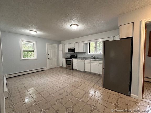 Main level offers Living Room, Eat in Kitchen and 1/2 bath. Upstairs you will find 3 Spacious bedrooms with a full bath. Lower level is a full walk out with heat and laundry hookups. Great space for a rec room. This half-duplex style home features brand-new flooring, fresh paint, and a spacious layout, this home is move-in ready. You will be able to enjoy the outdoors with a large deck overlooking the semi-private yard, or ride your bike on the Airline trail and visit the local parks in Colchester. Close to town amenities, schools, and highways for easy commuting. NO smoking. PET RESTRICTIONS - NO DOGS - BY APPOINTMENT ONLY. Sq ft is aproximate. Agent is related to owner.