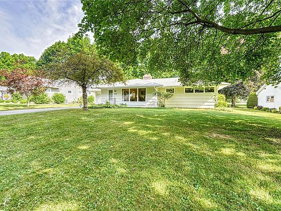 Classic mid-century modern ranch with open floor plan, great for entertaining. Three generously sized bedrooms. Gleaming hardwoods throughout, wood burning fireplace for cozy winter evenings. Eat-in kitchen with new vinyl flooring. Bright, sunny, and well cared for. Finished basement. Central air. Tear-off roof 2014.