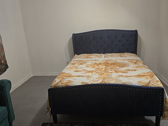 Queen size bed / sofa / coffee table / rug/ small fridge/ air fryer/ towels / bedding