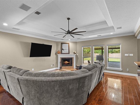 This custom home shows just like a New Build and has been meticulously maintained. Situated on a .5 acre lot, NO HOA or MUD, it offers endless possibilities for entertaining & making it your own. With a huge gourmet kitchen and dining area that is open to the living room it will be the favorite spot for holiday gatherings. The home offers a split floor plan, the primary bedroom features a huge en-suite complete with rain shower, separate jetted tub and huge walk in closet. The other spacious bedrooms would be great for guests or even a home office. To name a few of the upgrades you'll find in this home are stainless appliances, electric window shades, a custom home audio system, security system with cameras, full home generator, oversized garage with storage, TWO 50 AMP connections for motorhome(s), an additional gravel driveway for parking your RV, boat, trailers, a large storage shed on slab, own propane tank... AND MORE. This home truly is one in a million! Schedule a showing today!
