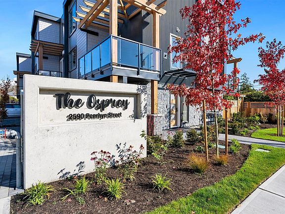 **Open Saturday 1-3PM** Steps from the sand & surf in friendly Cadboro Bay Village is The Osprey. 14 modern townhomes designed for living life to the fullest in one of the most scenic and walkable neighbourhoods in Greater Victoria. Each distinct floor plan offers an expansive living room, dining room and kitchen on the main level & two large top-floor bedrooms with views of the ocean or surrounding village. Primary bedroom boasts a large 5 pce ensuite, walk-in closet and balcony. An additional ground floor flex room provides endless opportunities for guest space plus private bathroom. Designed for comfort with engineered flooring throughout, large windows with automatic blinds & custom millwork w/ designer hardware. Luxurious kitchen with European appliance package & quartz waterfall countertop. Energy efficient heat pump & gas on demand hot water. #2 features an elevator, double garage & private yard space. Built by award winning GT Mann Contracting, MOVE-IN NOW