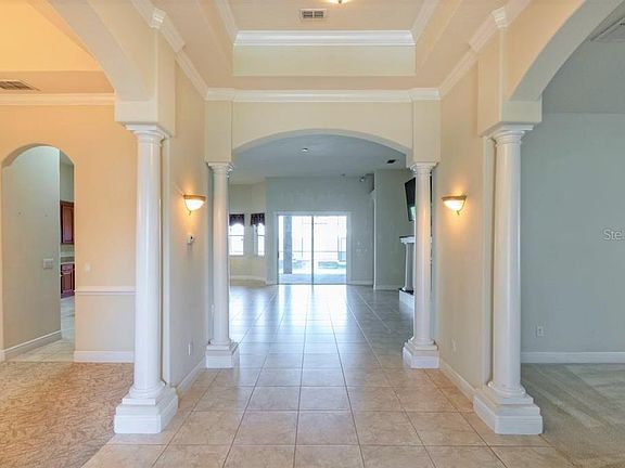 Exquisite describes this 4 bedroom 3 bath pool home with Spanish roof tile located in the gated community of Avilla. Once you enter this spectacular home, enjoy an open floorplan that includes formal living and dining rooms, a spacious family room with heat producing electric fireplace, and a luxurious master suite with stunning architectural details throughout. The kitchen is a delight with lovely granite countertops, stainless steel appliances, a kitchen island and beautiful 42" wood cabinets. The backyard retreat is perfect for entertaining with a roomy screened patio and a relaxing pool with spa. The home is also equipped is a 200 gallon underground propane tank that supplies fuel for the pool, spa, and grill. The HOA includes full lawn maintenance such as mowing, trimming, weed control, tree and shrub trimming and semi annual mulch replacement. The location of this home is perfect with easy access to the Loop shopping mall, theme parks and all major highways. Make this the home of your dreams today!