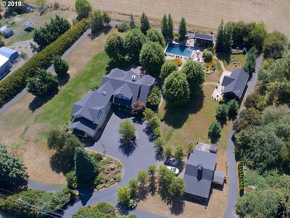 Strategically positioned near wine country, equestrian estates & the Willamette River, this unique property features an exquisite outdoor living experience as well as a cozy entertainment annex for those sporting events this fall. Family friendly home w/huge bonus room, 5 bedrooms up plus master on the main. Shop/barn is a home gym. Bucolic setting overlooking farmland; gated & landscaped for complete privacy plus 1/4 mile paved track!