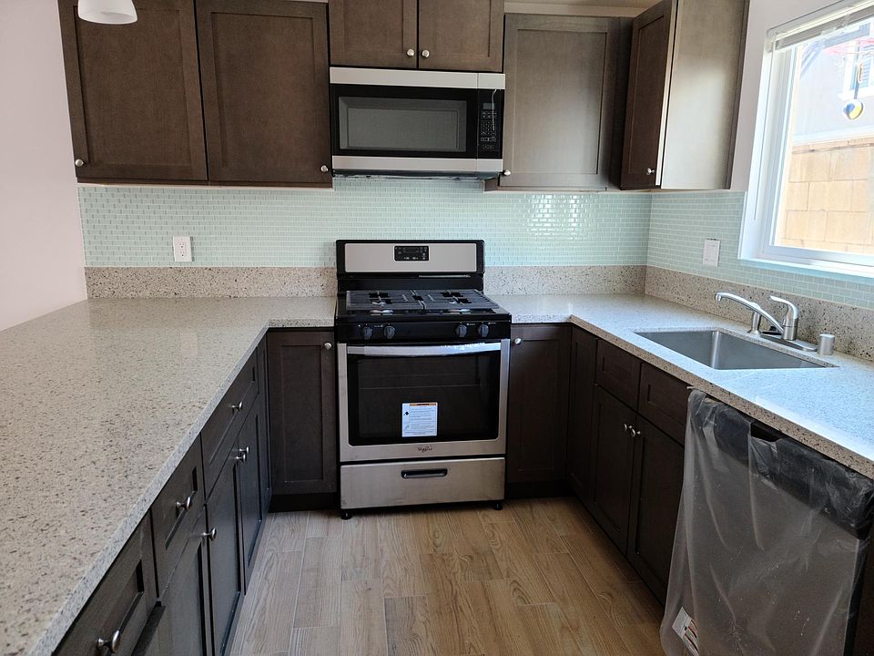 Brand new construction. 2 bedroom 2.5 bath townhouse style property located in Lomita. Adjacent garage next to the kitchen with separate pantries. Central A/C , wood-laminate floors in living areas throughout the unit and dual-pane vinyl windows. Each bedroom has a large wall-in closet. The half bathroom on the first floor has a washer and dryer hookups. Kitchen with Quartz countertop and stainless-steel appliances and mosaic backsplash. Bedrooms offered plenty of plenty of sunlight. All utility except gas, is included. Short distance to countless shopping centers, Rolling Hills Plaza and minutes to the beach. Unit is ready for immediate move in. All utility included except gas. First month rent and security deposit due at the signing. One cat is permitted. No smoking is allowed.