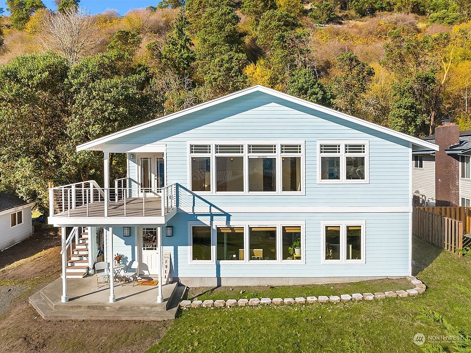 Custom 2-story w/breathtaking Puget Sound views, 3 bedrooms, 2 full baths, w/2292 Sq. feet, on-demand gas fired hot water, & in-floor radiant heat throughout. This beautiful home’s 2nd floor features two bedrooms including the master, plentiful natural light, captivating views of Mt Rainier, open concept kitchen w/stainless steel appliances, granite countertops, vaulted ceilings, custom & antique lighting, maple hardwood flooring, French doors, marble & glass wrapped shower w/separate soaking tub & deck. Lower-level features full kitchen w/island, radiant LVP & travertine flooring, expansive living room, 3rd bedroom, full bath & views. Large backyard and a short stroll to clubhouse w/pool & beach access while near 2 separate county parks