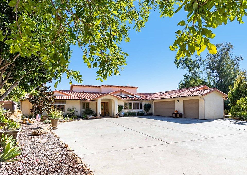 FALLBROOK DELIGHT SINGLE STORY PRIVATE GATED POOL HOME - 2019 Totally Updated - 2910 sq ft, 3 bedroom, 3 bathroom on 1.45 acres - Stunning views of the mountains, lights and more- just the beginning! Once inside, Entry takes you to the bright and inviting Family room w/rock fireplace, new luxury vinyl plank, new lighting fixtures, & large dining area. The family room opens up to the kitchen's large island w/seating area, tons of counter space, & cabinets. Dual ovens, electric 5 burner cooktop, dishwasher, & more! Three full bedrooms and 3 baths, including the huge Master bedroom with retreat, his and hers sinks and vanity area, a soaking tub, & separate large shower. Private sliding glass doors to access to the pool/spa. The second bedroom is a second master features with it's own bathroom w/soaker tub and separate shower. Also has sliding door access to the backyard pool/spa. The third bedroom has a large mirrored closet. Skylights add to the natural lighting. Recent upgrades to the home in 2019. This pool/spa home w/waterfall is situated on 1.45 acres adorned with 20+ avocado tree,8 orange trees, plus others. Once Past the private gate it reveals the inviting front entry with large leaded-glass door, well maintained landscape and a 2.5-car attached garage.