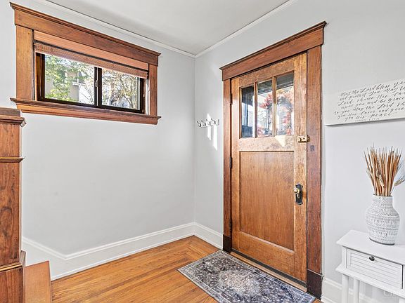 Cozy front porchGleaming hardwoodsStainless appliancesCounter barNatural woodworkStained glass windowOpen light-filled kitchen