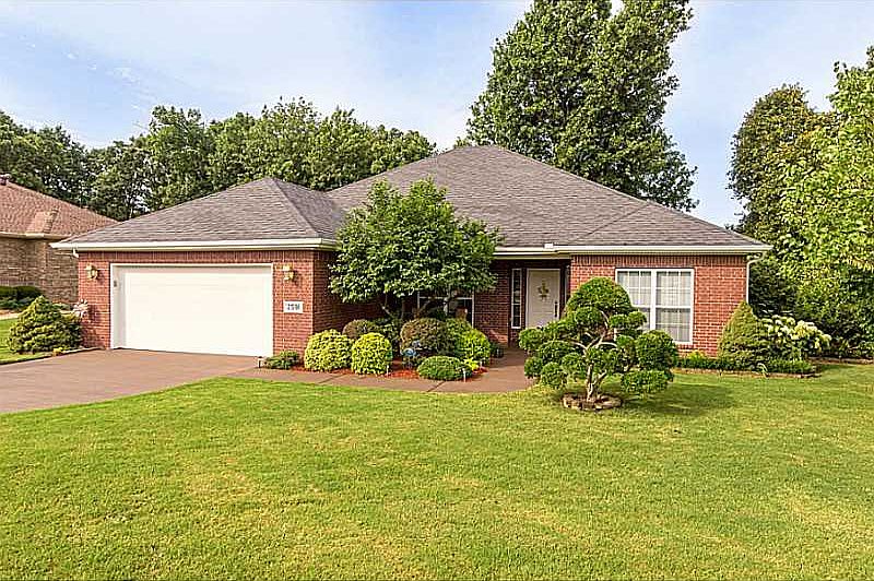This home features unique landscaping, a larger than anticipated interior and french doors that let out to scenic back deck. The deep mature tree shaded backyard is lush with flowers/shrub beds lined with AR flagstone complete with irrigation!,Crown molding, large master suite, oversized walk in closet, low maintenance, quartz counter tops , garage workshop area and more. Best lot in the neighborhood with neighborhood pool out the back gate with walking path. Move in ready & quick I-49 access!