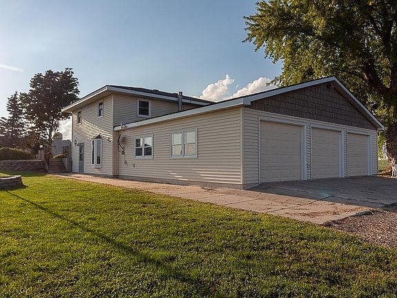 Spacious home located just minutes from town! Main floor features an inviting family room with gas fireplace, bedroom, 3/4 bath and laundry with just steps away to a 2nd lower level family room great for entertaining. Lots of natural light in the kitchen, dining and living room areas with access to a large outdoor wrap around patio. 3 same floor bedrooms with an updated full bath. Tons of space in the oversized 30x36 heated 3 car attached garage and a separate storage shed. Room to roam on the approximate 3.25 acre lot with tons of green space. Solid home with lots of major updates throughout!