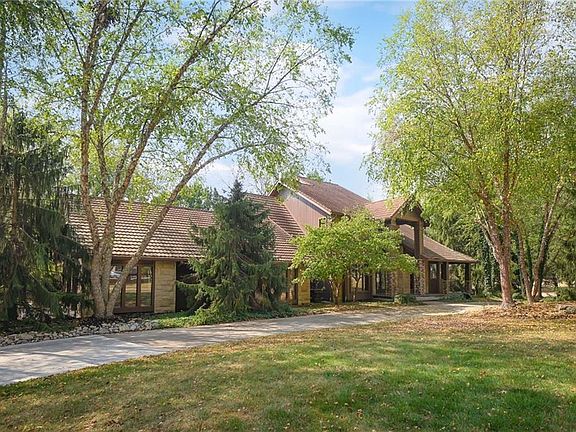 One-of-a-kind gated estate on 21 dreamy acres (4 parcels)! No HOA, tucked into a quiet neighborhood of mature trees and estate lots. This property is packed with luxurious amenities: heated saltwater outdoor pool (deep enough to dive), pool house cabana with WiFi, 117-yard golf hole, trails, volleyball, basketball, firepits and a 2+ acre stocked pond! The main home offers approx. 7,000 sq ft with 2 true primary suites upstairs, a 3rd bedroom in the finished lower level, and a 4th bedroom overlooking the flex room, and attached HVAC temperature controlled 6-car tandem garage with epoxy floors. Even more space is found in the charming two-bedroom carriage/guest house accessory the driveway with a 2 car garage. The Kitchen has brand new, high-end appliances, walk-in pantry with custom pull out storage, kitchen water filtration, two additional dishwasher drawers, and walks out to an oversized composite deck. The lower level has a bar for entertaining, fantastic theater room, a flex room with the indoor exercise pool that walks out to a covered porch. The home overflows with upgrades such as wide plank real wood floors with flush mount vents, whole house water softener, luxury trim work, Hunter Douglas blinds, steam showers, two laundry rooms, sliding screens at multiple screen doors, new exterior paint 2024, and more! This is more than a home -- it's a property designed for entertaining, relaxing, and enjoying the great outdoors! Enjoy a lifestyle and privacy views that can't be duplicated, all in a lovely neighborhood!