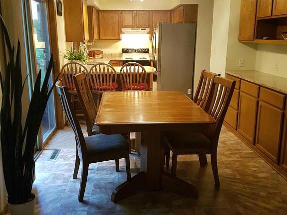 Excellent value in this updated two story home on a park like lot. Updates include new roof, siding, windows, driveway, and kitchen remodel with granite countertops. Upper features 3 bedrooms and a full bathroom. Walk out to the low maintenance concrete patio from the kitchen. Lower level features finished rec room for added space. Located in a quiet subdivision at the end of a cul de sac. Swingset and 10x12 storage shed with loft included. Close to the lake, walking trail, and schools. Come take a look today before it is too late.