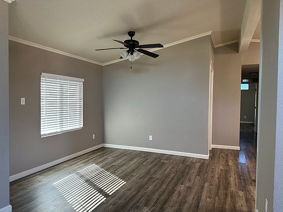 Beautifully Remodeled Mobile Home on a Ranch Setting Available for Rent! Home features Laminate Flooring throughout, Central Heating and Air, Modern Neutral Paint Colors and is located on a Quiet Country Rd. Clothes Washer, Clothes Dryer, Refrigerator and Shed are included.