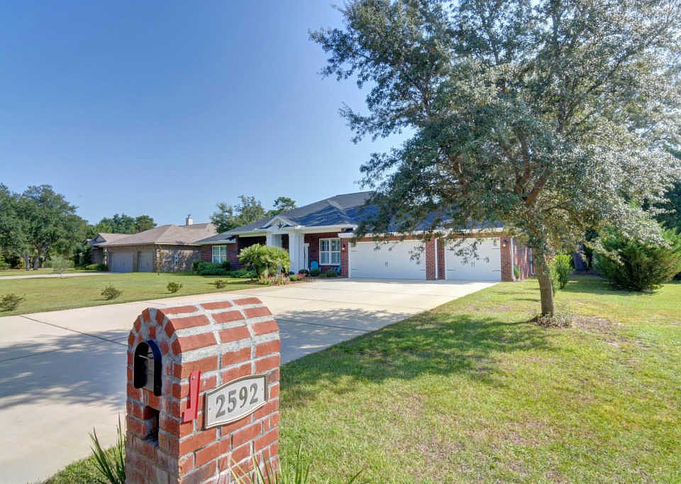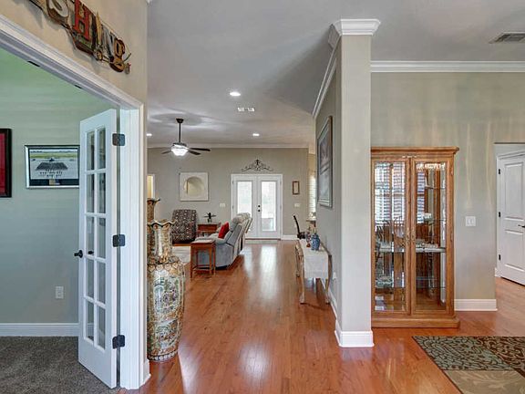 Welcome home ..Simply Stunning true custom built home. Located on a large lot tucked away on a small winding side road with lots of natural oaks and trees offering a wonderful home site.Plenty of off-road parking with a 3-car garage.Amazing back yard is fully fenced with a wooded privacy buffer and park like setting just waiting for your future pool. On entering the home you will be immediately impressed with the attention to detail throughout ~ Gorgeous wood flooring ~Plantation shutters~Gourmet Dream Custom Kitchen with Granite countertops ~ S/S appliances with vented extractor hood~under cabinet lighting~tiled backsplash and double pantry~wrap around counter top bar with open flow to the breakfast nook & family room with high ceilings,crown molding & double doors leading out to the