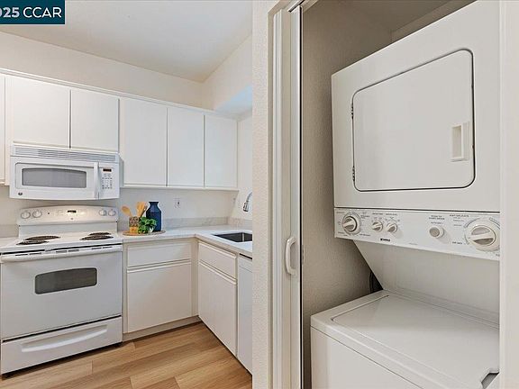 Welcome to this beautifully updated ground-floor condo in the highly desirable Ashford Court gated community! This highly sought-after one-story offers no steps to entry & is ideally located in one of the most coveted areas of the complex, nestled toward the back. This light-filled end unit features an inviting open floor plan with high ceilings creating a bright and airy living space. Updated kitchen shines with new quartz countertops, stainless-steel sink & faucet, and dishwasher. Two private patio spaces extend your living area outdoors: perfect for relaxing or entertaining. Inside, enjoy new luxury vinyl flooring in the main living areas, upgraded carpet in the bedrooms, and vinyl tile flooring in both bathrooms. Primary bathroom boasts a newly updated shower, while both bathrooms include new toilets and fixtures. Additional features include spacious bedrooms, fireplace, stackable washer & dryer, storage room off patio, and new interior paint, door hardware, and lighting fixtures in the entry, hallway, bathrooms, kitchen, and dining area. A detached enclosed one-car garage is conveniently located near the unit. Close to shopping, dining, parks, and top-rated schools- with easy access to BART, Highway 680, Horse Trail, Walden Park, Bay Club, and downtown Walnut Creek.