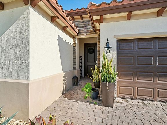 Experience modern living in this 4-bedroom, 3-bathroom home with a 2-car garage. The interior features a bright, spacious living area with tile floors throughout, and a chef's kitchen with tall dark wooden cabinets and top-of-the-line stainless steel appliances. The bedrooms are generously sized, and the master bath boasts dual sinks and a walk-in shower. The exterior includes a fenced backyard with space for a pool and a paved driveway. Located in a gated and secure community, this home is close to the Florida Turnpike, shopping malls, and recreational facilities. Don’t miss the opportunity to make this charming home yours! Schedule your viewing today.