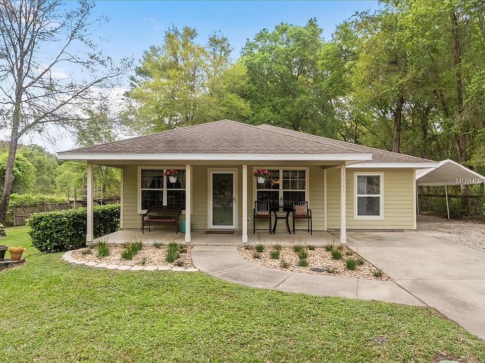 Lake County Property Appraiser has been updated to reflect 3 bedrooms, see attached property record card. Beautiful 3/2 home in the country setting. Enter the tranquility of this corner lot backing up to the conservation area, nestled on a quiet private street surrounded by oaks. This Home features an open floor plan with vaulted ceiling, custom tile work all throughout the house, kitchen with a breakfast bar and dining area.The Master bedroom has French doors leading on to a private porch, master bathroom with a gorgeous walk in shower, and a walk in closet. Laundry room is conveniently located inside next to the master bedroom. Second bedroom also has a large closet and celling fan. Enjoy the mature landscape and natures scenery from all the windows in the house. Property is fully fenced in with a gate, has a detached workshop in the back and irrigation system. This is a Golf Cart friendly community with no HOA fees. Property is located close to Mount Dora, 5 min drive to Rock Springs State Park, and minutes away from Wekiva Parkway (Sr 429) which makes it an easy commute to Downtown Orlando, Disney, Lake Mary, Sanford and Winter Garden. This is a must see!