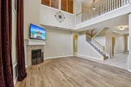 Cozy tiled fireplaceOversized windowsBright open-concept floor planDouble-height draperyAbundant natural lightStainless steel appliancesAll-brick two-story home