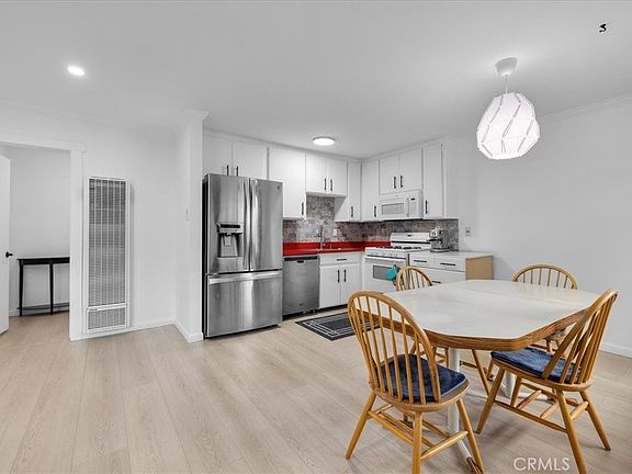 Welcome to this beautiful, move-in ready condo located in Lomita Horizons. This charming unit offers two bedrooms, one bathroom, and 805 square feet of living space. Upon entering, you're greeted by a spacious living room illuminated by recessed lighting. The living room opens seamlessly to the kitchen and dining area which has double pane energy efficient windows. The kitchen features a beautiful stone backsplash, stainless steel refrigerator (included in sale) and dishwasher, and white cabinets. The unit boasts two comfortably sized bedrooms with ample closet space and a remodeled bathroom that adds a touch of modernity. Additional features include smooth ceilings with updated crown moulding, LED recessed lights, waterproof laminate flooring throughout, and built-in bookshelves in the living room. HOA dues include water, trash, gas, earthquake insurance, basic cable, and the unit comes with TWO assigned parking spaces (#21) and an additional storage space. Lomita Horizons amenities include secured access to the community, a beautiful courtyard, pool, spa, sauna, and laundry facilities. Located close to shopping, restaurants, schools, and highway access, this is an opportunity you do not want to miss!