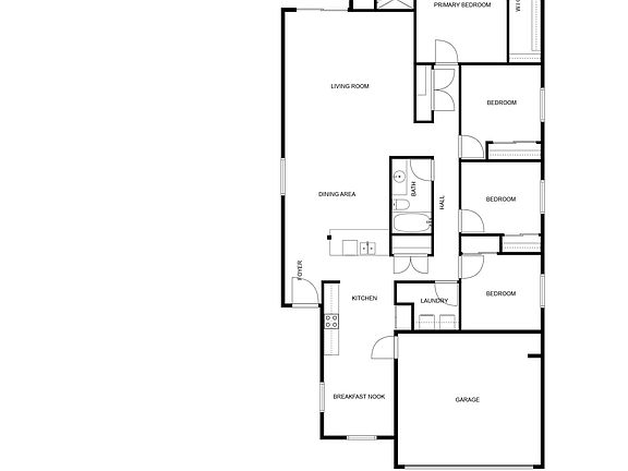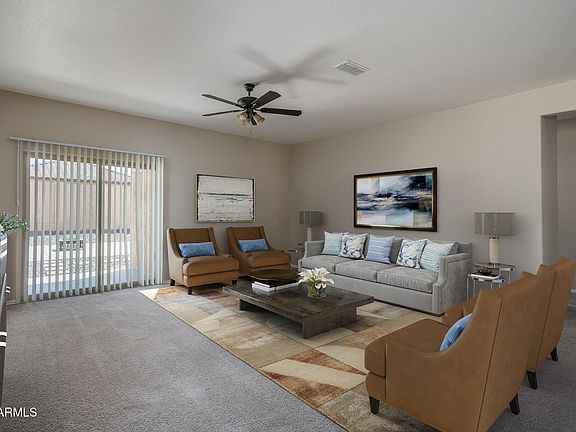 Welcome to this charming single-level home nestled in the heart of family-friendly Festival Foothills. Offering 4 spacious bedrooms, 2 bathrooms, and 1,879 square feet of thoughtfully designed living space, this residence is perfect for growing families, first-time buyers, or savvy investors. The eat-in kitchen features rich dark maple cabinetry with sleek hardware, granite countertops, stainless steel appliances, a double-door pantry, and a breakfast bar ideal for casual meals or entertaining guests. Step into the inviting great room, where sliding glass doors open to a covered patio and a low-maintenance backyard complete with artificial turf, perfect for kids and pets to play on. Enjoy added privacy with block fencing, an extended paver patio, and no two-story neighbors in sight. The primary suite offers a peaceful retreat with a large walk-in closet and a private en-suite bath featuring an extended vanity and walk-in shower. Additional highlights include a neutral color palette and ceiling fans throughout, durable tile flooring in kitchen and bathrooms, a convenient 2-car garage, and all appliances included for a seamless move-in experience. This home combines comfort, style, and practicality in a welcoming community. Don't miss your chance to own a piece of Festival Foothills! NEW CARPET BEING INSTALLED ON FRIDAY, 9/5!