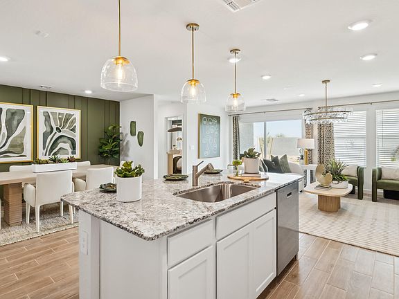 Beautiful home on a corner lot! Desirable 4 bedroom, 2 bathroom Easton floor plan. Open, spacious gathering area with upgraded kitchen, white cabinetry with shaker style doors and granite countertops. Energy efficient stainless steel appliances and pre-plumbed for reverse osmosis. Beautiful wood-like tile plank in all the right spaces, including hallways, living room, kitchen, dining, bathrooms and laundry room. The bedrooms include an upgraded plush carpet. Prewired for electric car charger, soft water loop, keyless front door entry and camera. So many upgrades, included at great low price. Our homes have the same level of upgrades as our models and sometimes more. You must see them in person. Great location, close to freeways, shopping and restaurants! Warranty included.