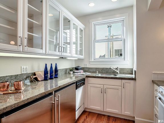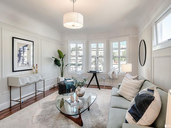 Location, location, location! This charming, renovated 1 Br/1 Ba condo located at a great Pacific Heights location across from Alta Plaza Park! Light filled top floor corner unit with great City views to the South - Park outlook North - Skyline outlooks East. High ceilings, recessed lighting and hardwood floors throughout. Large living room with Bay windows, great remodeled kitchen with an eat-in area, custom cabinetry, granite counter tops, gas stove and high ceilings. Good sized bedroom with South views of the City along with a small seating area/office plus a separate large walk-in closet. Just 1 block from San Francisco's premiere shopping district on famed Fillmore Street. Common laundry in the building.