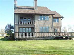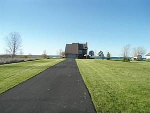 Unique contemporary, Lake Ontario waterfront home on 1 acre lot. Spacious, 3 bedrooms, 2 1/2 baths, living room with gas fireplace. Awesome view of the lake! Large, eat-in kitchen with lots of cupboards and counter space. Gleaming hardwood floors throughout. Master bedroom with deck, fireplace, master bath with jacuzzi, fireplace and walk in closet. Serene setting, wraparound porch facing lakeside. This beautiful home is maintenance free.