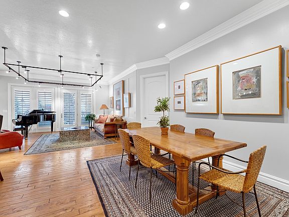 PRICE IMPROVEMENT - Prestigious location across the street from Riverside County Club. Indulge in upscale maintenance free living inside this rare 3-bedroom, 2 1/2 bath, custom crafted condominium featuring 10' ceilings, gorgeous hardwood floors, beautiful floor-to-ceiling custom cabinetry and finish work, crown molding, ample storage, plantation shutters, 2 bedrooms with ensuite baths, French doors open to east-facing covered balcony, chef's kitchen with high-end commercial grade appliances including a WOLF range and brand new high end refrigerator. The 3rd bedroom located next to the entry is perfect for an office space with built in bookshelves/desk. This home offers safety for those living here full time, and ease of mind if it's a second home. The HOA amenities are top-notch, with a pool, clubhouse, tennis court, hot tub, and covered garage parking all well maintained. Located within walking distance to the BYU stadium and campus, this location is truly unbeatable. Explore the nearby shops and restaurants at Riverwood, enjoy beautiful Provo Canyon, Sundance Resort, and the many convenient walking/biking trails.