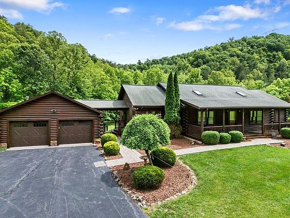 A Sanctuary in the Blue Ridge mountain foothills. Beautiful log residence situated on nearly three pristine acres. Remarkable property offers rustic elegance and refined comfort. Not merely a home, but a legacy property where the rhythms of nature dictate the pace of daily life. The residence encompasses over 3,300 square feet of thoughtfully appointed living space, showcasing the timeless artistry of authentic log construction. Soaring cathedral ceilings create an atmosphere of grandeur, while the commanding stone fireplace serves as the heart of the home. Well appointed kitchen flows seamlessly into generous entertaining areas, with three covered porches offering the perfect setting for morning rituals and evening relaxation. The thoughtfully designed lower level expands the living experience with its huge family room and versatile spaces. The walkout basement invites outdoor living, leading to terraced entertaining spaces that include a sparkling pool and an intimate gazebo.