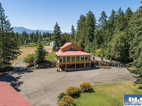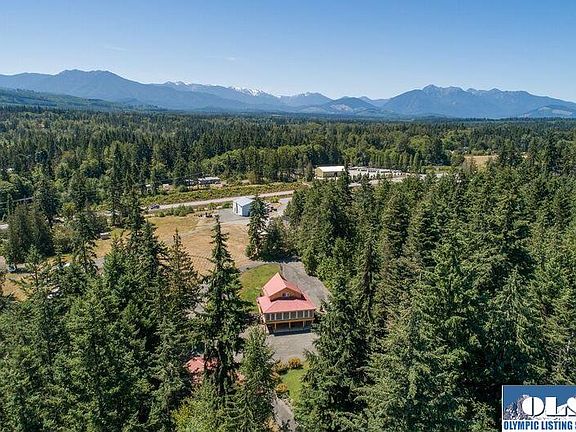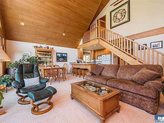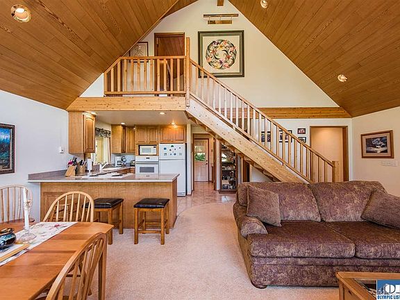 Private 5 acres w/beautiful shrubs, plants, towering trees, abuts an undeveloped portion of Robin Hill Park. Lovely 2 story custom old growth cedar 2 BR, 2 1/2 bath home. Master suite can be upstairs or in the finished basement. Wonderful cedar exercise room w/large windows & cozy den/office or master w/pellet stove. Gazebo, & lots of paved driveway & finished 3 car show garage w/woodstove & shop space. And, another garage/shop bldg. w/woodstove & lots of wood & other storage. 2 RV spaces w/garage/shed.