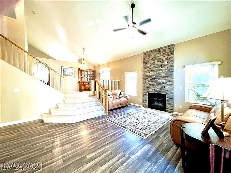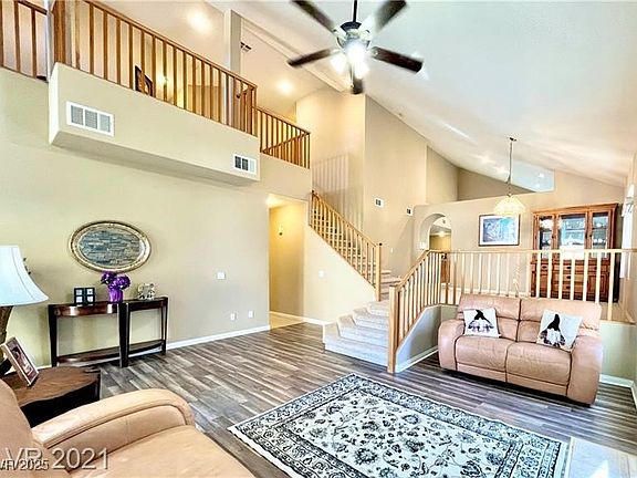 Beautiful and spacious 4-bedroom, 3-bathroom home with a 3-car garage located in a quiet, family-oriented gated community in one of the best school districts in Las Vegas. The second-floor features 3 bedrooms, 2 bathrooms, and a large open loft, while the ground floor includes a bedroom and full bathroom, perfect for guests or multi-generational living. The master suite offers a walk-in closet and a large balcony. Centrally located near top-rated schools, shopping, and dining.