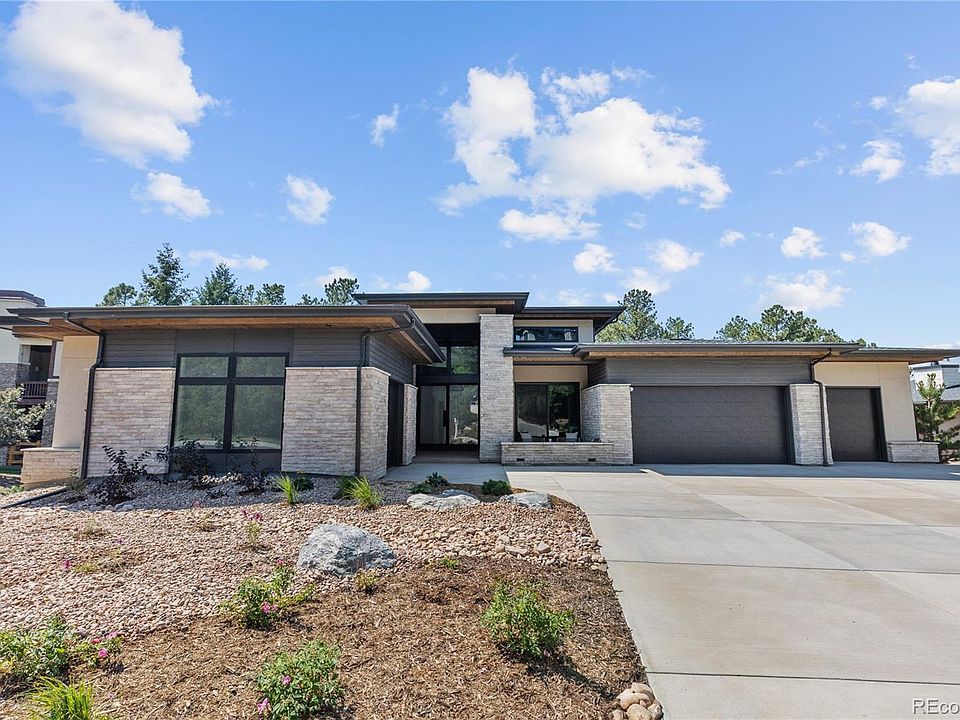 Welcome to your new-construction luxury home by award-winning Renaissance Homes, nestled among mature pines and Gambel oak in the highly desirable Escavera neighborhood. This striking 2025 Colorado Contemporary modern luxury home blends sleek, clean lines with warm, natural textures to create a serene forest sanctuary yet delivers high-performance design and every luxury for elevated living. Floor-to-ceiling clerestory windows and a 16-ft multi-panel door dissolve the boundary between indoors and out, embracing true indoor-outdoor living. A chef’s kitchen boasts professional appliances, custom cabinetry, a walk-in pantry with Closet Factory built-ins, plus a secondary back kitchen for prep or cleanup. Entertain in style with a walk-up wet bar, full wine column, outdoor kitchen, and a finished walk-out basement designed for movie nights, big-game days, and a trip around the links with your own personal golf simulator. Retreat to the main-floor owner’s suite complete with spa-style bath featuring a freestanding tub, expansive multi-headed shower, and private deck access. The main-floor guest suite has an exclusive entrance and en-suite bath for comfort and privacy. Bonus spaces include a dedicated main-floor home office, glass-enclosed gym with corner views, a secondary lower-level office/hobby studio, and abundant storage throughout. Practical luxury extends to the fully finished 4-car garage with epoxy floor coating, EV charger, and hot/cold hose bib, while a whole-home energy recovery ventilation system enhances indoor air quality year-round. All this sits on a lush 0.37-acre lot of forested privacy with mature trees, yet you’re just minutes from retail, dining, trails, and top-rated Douglas County schools. This is more than a home, it's an elevated lifestyle ready for you. Schedule your private tour today to experience warmth, design, and tranquility in person.