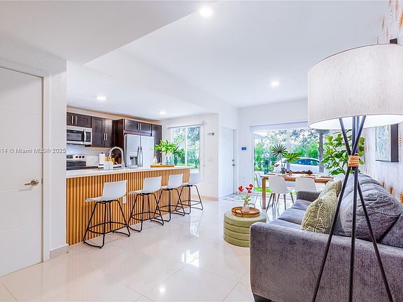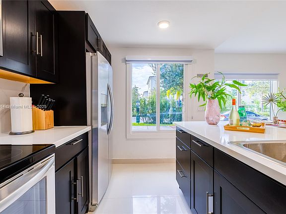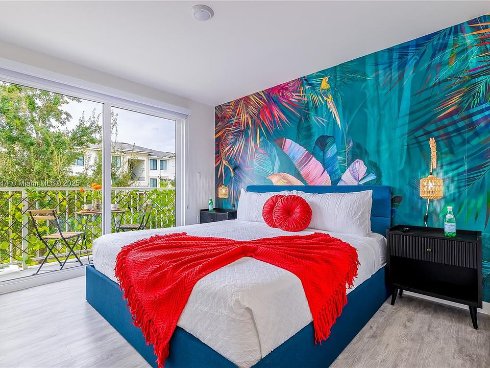 Stunning 4-bed, 3.5-bath modern townhouse with tropical design. The first floor features an open-concept living space filled with natural light, a bedroom with a full en-suite bath, and a guest half bath in the kitchen area. The kitchen offers stainless steel appliances, quartz countertops, and a large island. One of the standout features is the first-floor bedroom, which has a private entrance ,ideal for generating additional rental income or for a family member seeking privacy. Upstairs, the master suite includes a private balcony, walk-in closet, and en-suite bath. Enjoy a private rooftop terrace with a pergola, outdoor TV area, and panoramic views,perfect for entertaining or relaxing. Washer and dryer in unit.